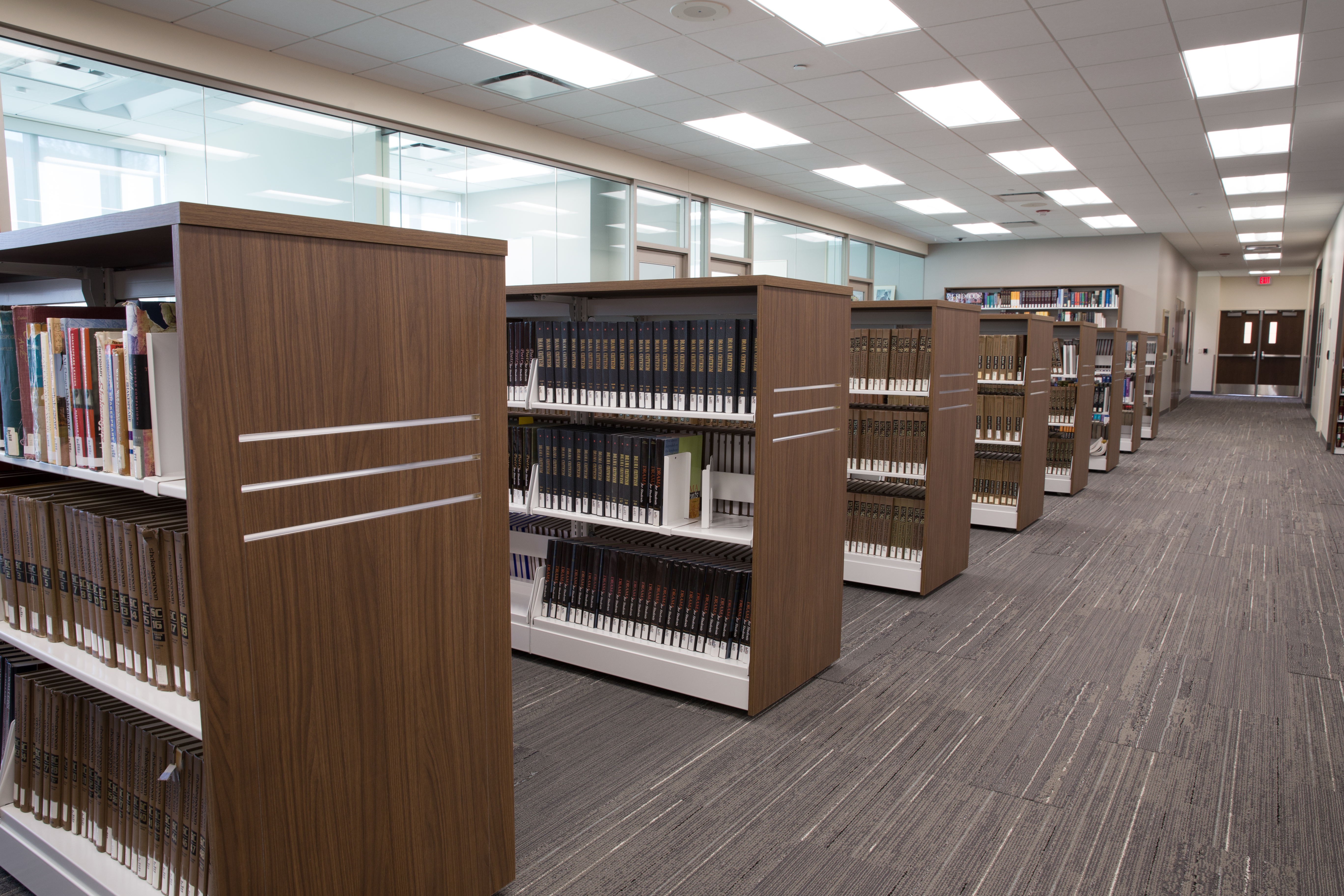 High-density mobile shelving from Spacesaver eliminates unnecessary aisles, compactly storing books, supply bins, P.E. gear, and resources while freeing up space for active learning or collaboration zones.